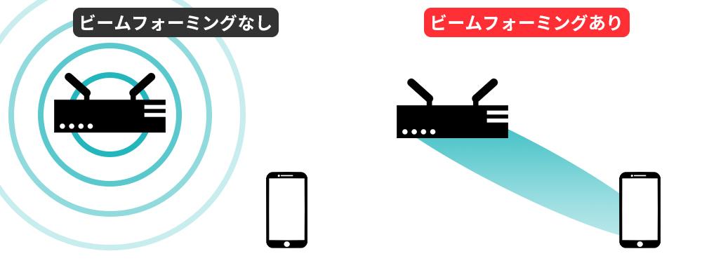この機能を搭載しているルーターであれば、特定の方向に向けて集中的に電波を送れるため、非対応のものよりも高速で安定した通信が行えるようになります。