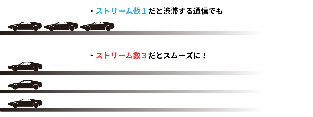 そこでポイントになるのが、「ストリーム数」です。ストリーム数とは、データを送受信する通信経路の数を指します。