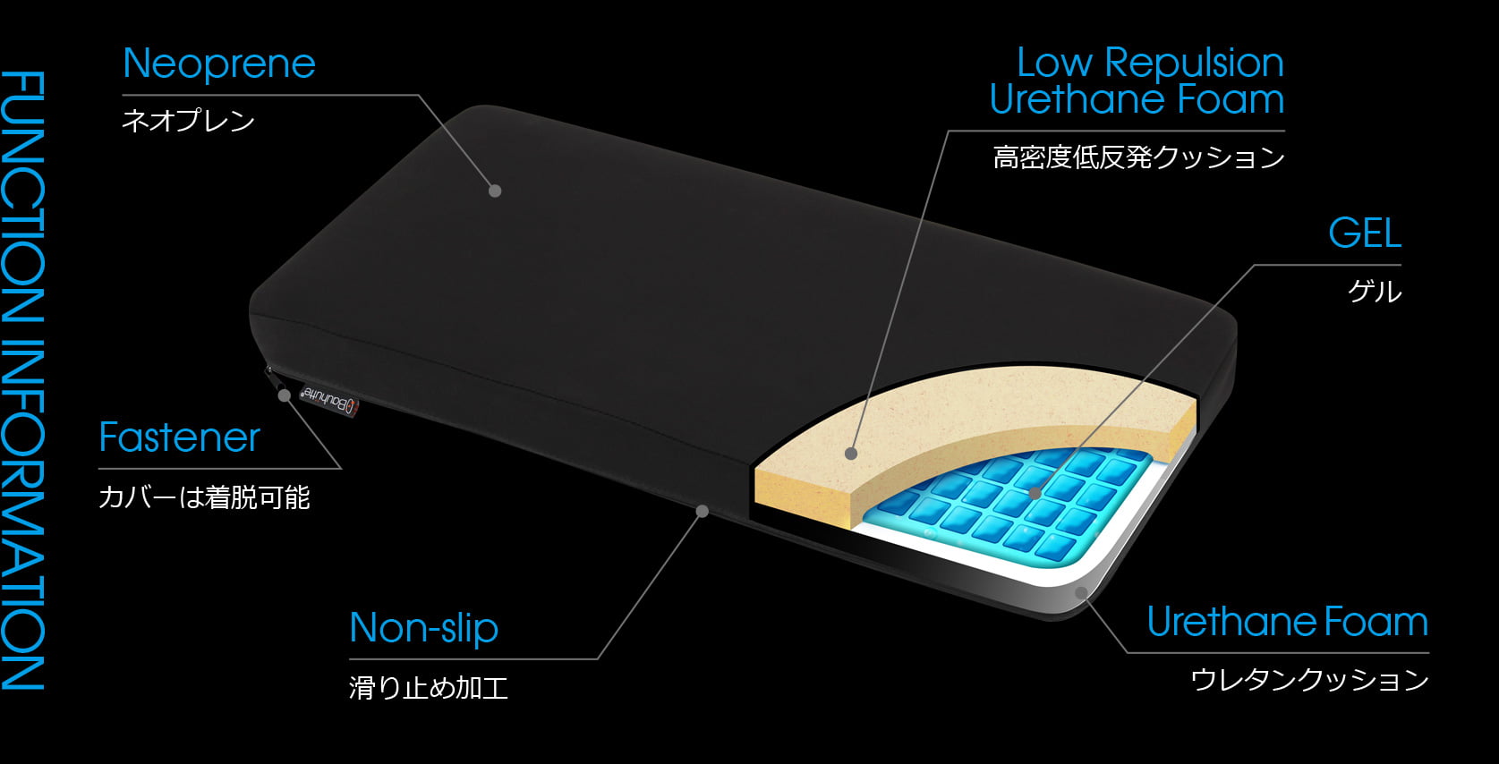 表面素材のカバーには通気性の高いネオプレンを使用しています。