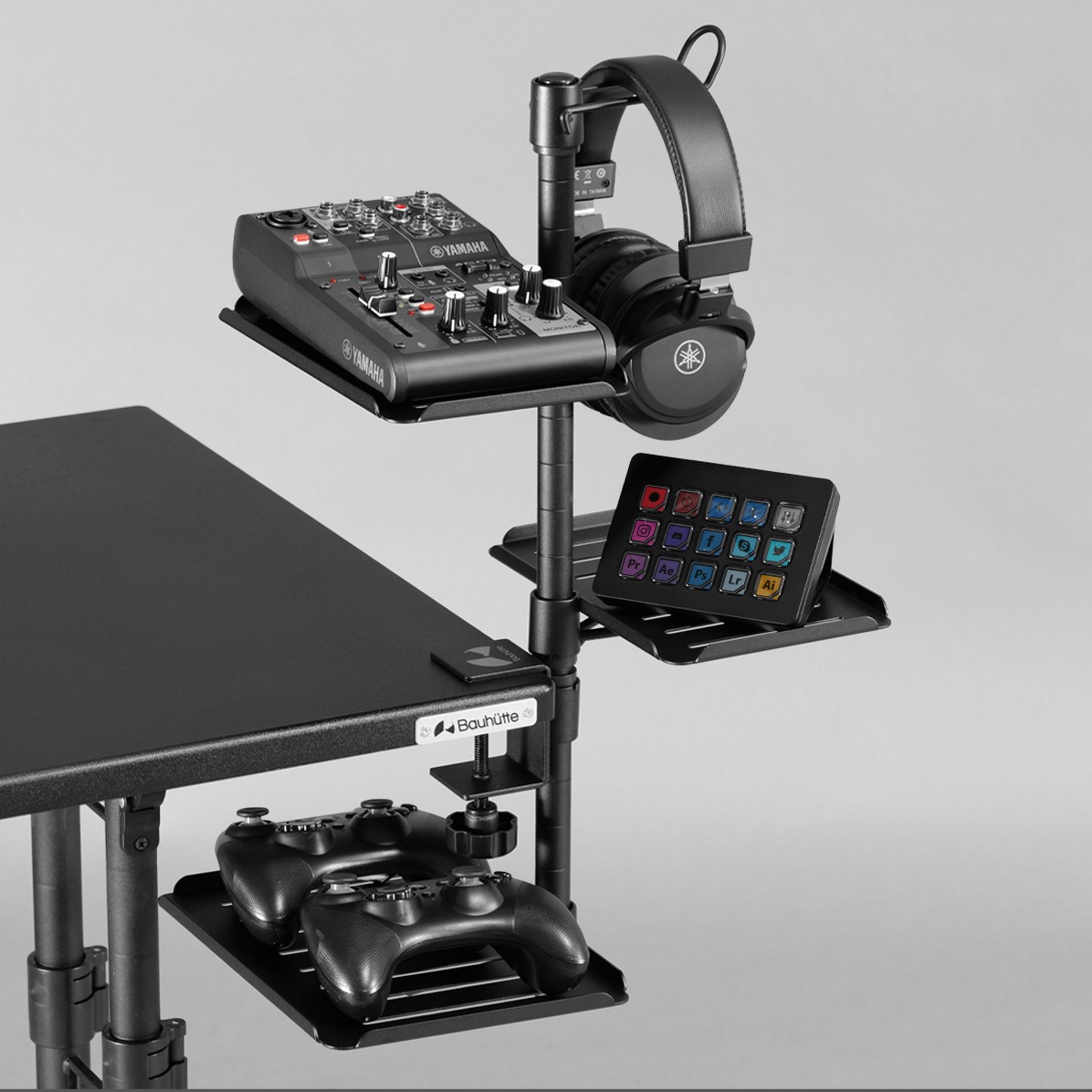 機材を浮かせてデスクを広く使える、クランプ式の専用スタンド ![]()